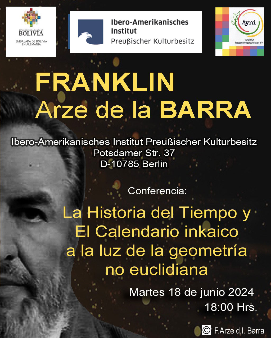 Ninan está haciendo una gira por Europa. El 11 de junio estuvo en Madrid, pasará por Zaragoza. En Berlin dará su conferencia el 18 de junio a las 18:00 hrs en el Ibero-Amerikanisches Institut, Potsdamer Str. 37. En Leipzig estará el 21.06.24 a las 18:00 hrs. en la Universidad Leipzig, Neues Seminargebäude S. 121 para compartir con los oyentes el resultado de sus investigaciones. Estas invitado para escuchar las respuestas a las preguntas: ¿Por qué 1+1=0? ¿Y qué tiene que ver eso con el Calendario de los Inkas?